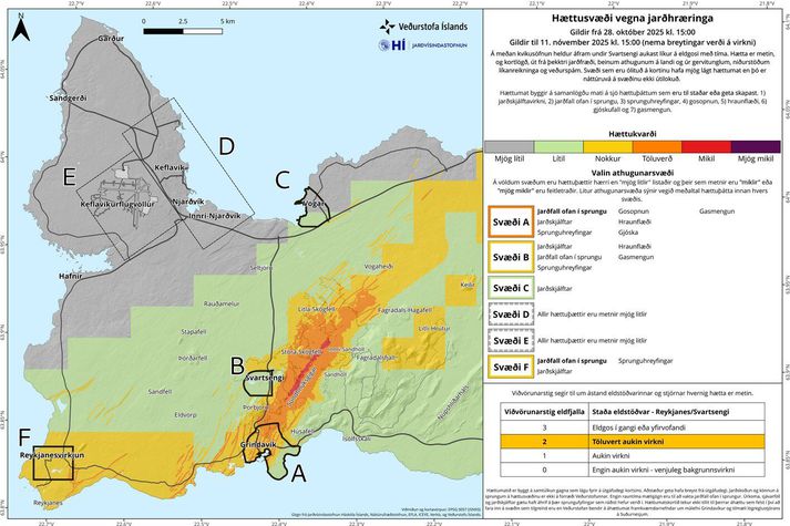 Hættumat Veðurstofunnar hefur verið uppfært og verður óbreytt til 11. nóvember nema ef virkni breytist.