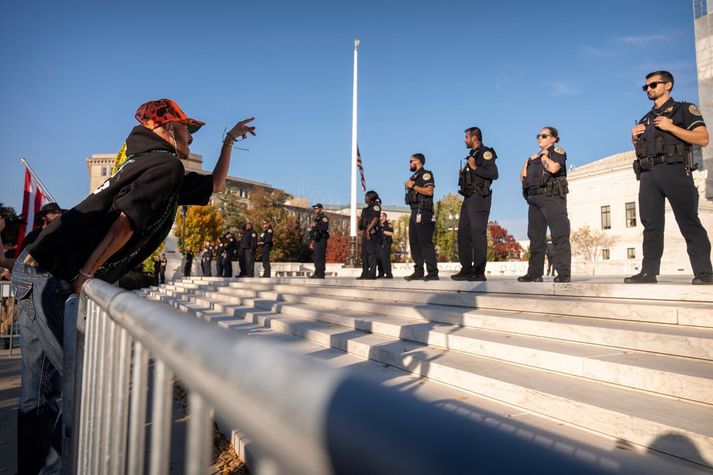 Tortryggnir í garð tolla Trumps Samúel Karl Ólason skrifar 5. nóvember 2025 22:30 Mótmælandi fyrir utan hæstarétt Bandaríkjanna í dag. AP/Mark Schiefelbein Dómarar hæstaréttar Bandaríkjanna virðast hafa töluverðar efasemdir um það að Donald Trump, forseti Bandaríkjanna, hafi farið að lögum við beitingu tolla sinna á undanförnum mánuðum. Það er ef marka má spurningar þeirra í dag þegar málsmeðferð um lögmæti tollanna fór fram en þá spurðu margir dómaranna lögmann ríkisstjórnar Trumps gagnrýnna spurninga. Fari svo að tollarnir, allir eða hluti þeirra, verði úrskurðaðir ólöglegir mun það hafa gífurlegar afleiðingar fyrir ríkisstjórn Trumps og áherslur hans á kjörtímabilinu. Tollarnir hafa áður verið úrskurðaðir ólöglegir á tveimur lægri dómstigum en þá ákváðu dómarar að hafa þá áfram í gildi, þar til úrskurður hæstaréttar liggur fyrir. Þar hefur málið fengið flýtimeðferð en úrskurður gæti legið fyrir eftir nokkrar vikur eða nokkra mánuði, þó dómarar hafi tæknilega frest til næsta sumars. Sjá einnig: Taka tolla Trumps í flýtimeðferð Talið er að úrskurður muni liggja fyrir í lok árs. Tollar vegna neyðarástanda Trump hefur beitt fjölmörg ríki heims umfangsmiklum tollum frá því hann tók við embætti forseta í janúar. Marga þeirra setti hann á grunni laga um neyðarástand frá 1977. Þessum lögum hafði þangað til að mestu verið beitt til að koma á refsiaðgerðum vegna ógna gegn Bandaríkjunum. Tollana hefur Trump notað til að þrýsta á ríki og ríkjasambönd til að samþykkja nýja viðskiptasamninga, sem þykja í flestum tilfellum hagstæðari Bandaríkjunum. Þá hafa tollarnir reynst stór tekjulind fyrir bandaríska ríkið. Í fyrri úrskurðum í málinu sögðu dómarar að umrædd lög veittu forseta Bandaríkjanna umfangsmiklar heimildir en það að beita tollum eða sköttum væri ekki þar á meðal. Það ætti samkvæmt stjórnarskrá Bandaríkjanna að vera á höndum þingsins. Trump hefur ítrekað tekið sér völd sem hingað til hafa verið þingsins en Repúblikanar, sem eru í meirihluta í báðum deildum þingsins, hafa sýnt lítinn mótþróa. Sjá einnig: Reynir að taka fleiri spil úr stokki þingsins Dómsmálið snýr ekki að öllum tollum Trumps en þó flestum. Þeirra á meðal eru hæstu tollar hans á ríki eins og Kína, Kanada og Mexíkó. Úrskurðurinn hefur einnig áhrif á tollana frá því í apríl sem taka mið af viðskiptahalla Bandaríkjanna við önnur ríki heims. Tollar á stál, ál og bíla eru meðal þeirra sem halda enn velli. Þeir voru settir á eftir skoðun viðskiptaráðuneytisins, þar sem niðurstaðan var að innflutningur á þessum vörum ógnaði þjóðaröryggi. Það sama á við um tolla Trumps gegn Kína, frá fyrra kjörtímabili hans og tolla sem Joe Biden hélt í gildi, en þeir voru settir á eftir að yfirvöld í Bandaríkjunum komust að þeirri niðurstöðu að Kínverjar beittu ósanngjörnum aðferðum til að bæta stöðu þarlendra fyrirtækja gagnvart öðrum. Tvo íhaldssama dómara þarf til Í dómsal í dag bentu nokkrir dómarar á að enginn forseti hefði hingað til haldið því fram að lögin frá 1977 veittu þeim völd til að beita tollum án aðkomu þingsins. Þar á meðal voru þrír dómarar sem skipaðir voru í embætti af Repúblikana, samkvæmt frétt AP fréttaveitunnar. Sex dómarar af níu voru skipaðir af Repúblikönum og þrír af Demókrötum. Verulega ólíklegt þykir að seinni dómararnir þrír séu hlynntir því að forseti geti beitt tollum án aðkomu þingsins og því þurfa tveir íhaldssamir dómarar að vera sammála þeim svo að tollarnir verði úrskurðaðir ólöglegir eða dregið verði úr umfangi þeirra á einhvern hátt. Hingað til hafa þeir þó ekki haft vilja til að standa í hárinu á Trump og hafa ítrekað úrskurðað honum í vil. Donald Trump þegar hann tilkynnti hluta af tollum sínum í apríl.AP/Mark Schiefelbein Endalaust neyðarástand? John Roberts, forseti hæstaréttar, Neil Gorsuch og Amy Coney Barrett virtust öll efast um réttmæti aðgerða Trumps í dag og það að neyðarástandsyfirlýsing veitti honum eins umfangsmiklar heimildir og hann og ríkisstjórn hans halda fram. Barrett spurði til að mynda hvort að tollarnir sem Trump beitti fyrst, á fjölmörg ríki heims, og byggðu á viðskiptahalla við tiltekin ríki, féllu undir neyðarástandsyfirlýsingu. „Heldur þú því fram að hvert einasta land þurfi að vera beitt tollum vegna ógna við þjóðaröryggi og iðnaðargetu?“ spurði Barrett lögmann ríkisstjórnarinnar, samkvæmt frétt New York Times. „Ég meina, Spánn? Frakkland? Ég gæti tekið það gilt með einhver lönd en útskýrðu fyrir mér af hverju svo mörg lönd voru beitt þessum tollum.“ Roberts gaf einnig til kynna að hann gæti úrskurðað Trump í vil, þegar hann sagði forseta Bandaríkjanna hafa umfangsmikil völd þegar kæmi að utanríkismálum. Hann sagði einnig að tollarnir hefðu virkað vel fyrir Trump til að ná markmiðum sínum. Bæði Barrett og Gorsuch, sem voru skipuð í embætti af Trump, gáfu til kynna að Trump gæti hafa tekið sér of mikið vald, sem ætti að vera á höndum þingsins samkvæmt stjórnarskrá, og að það yrði þinginu erfitt að fá þetta vald aftur ef Trump fái sínu framgengt. Fyrri úrskurðir gegn Biden hafa áhrif Dómararnir Brett Kavanaugh, sem skipaður var af Trump, og Samuel A. Alito yngri virtust opnir fyrir túlkun ríkisstjórnar Trumps á neyðarlögunum og spurðu lögmenn þeirra sem höfðuðu málið gegn ríkisstjórninni spurninga sem gáfu það til kynna. Kavanaugh lýsti til að mynda yfir áhyggjum af því að fjarlægja tolla úr verkfærakistu forsetans og spurði af hverju þingið ætti að hafa gefið forsetum vald til að stöðva millirí