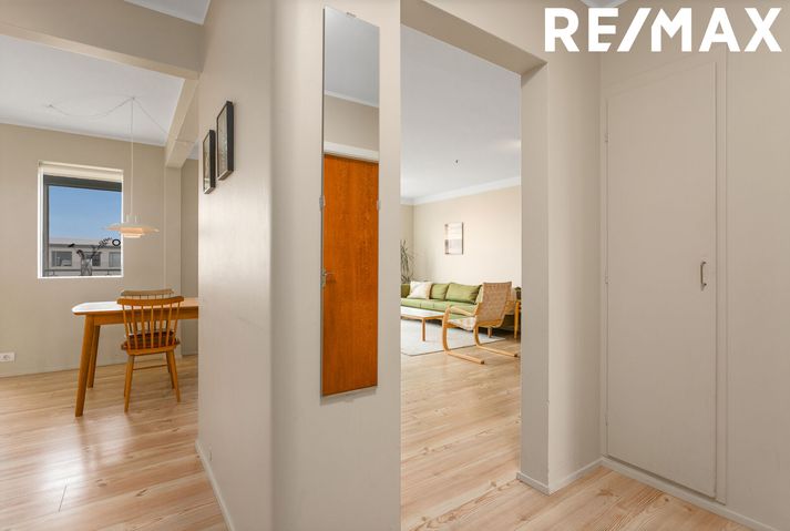 Um er að ræða 88 fermetra íbúð á fjórðu hæð í snyrtilegu fjölbýlishúsi sem var byggt árið 1957. Eignin hefur verið töluvert endurnýjuð á smekklegan máta. Stofa, borðstofa og eldhús er samliggjandi í opnu og rúmgóðu rými með góðum gluggum með fallegu útsýni. Í eldhúsinu er nýleg hvít innrétting með grárri borðplötuog góðu skápaplássi. Þaðan er útgengt á suður svalir. Í íbúðinni eru tvö svefnherbergi og eitt baðherbergi. Nánari upplýsingar um eignina má nálgast á fasteignavef Vísis.