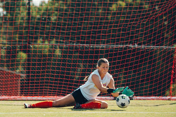 Júlía birtir reglulega myndskeið á TikTok þar sem hún sýnir og segir frá lífi sínu í Bandaríkjunum. Fylgjendahópurinn hefur vaxið jafnt og þétt undanfarin ár og margir eru forvitnir, sérstaklega þegar kemur að menningarmismuninum á Íslandi og suðurríkjunum. @itsbriitneybitchhh Hey y’all!! #fyrirþig #bandarikin ♬ original sound - The Britney Sló til á endanum Júlía byrjaði ung að æfa með Þrótti og þegar leið að útskrift úr Verzlunarskólanum árið 2021 var hún þegar búin að setja stefnuna á að fara erlendis í háskólanám og fá fótboltastyrk. Bandaríkin voru efst á listanum. Á þessum tíma var COVID-faraldurinn í fullum gangi og það setti strik í reikninginn. „Ég var rosalega hörð á því að ég vildi komast út strax, en út af Covid þá var ekki eins mikið framboð og eins mikið fjármagn og áður hjá öllum þessum toppskólum og liðum. Það voru þrjár vikur í útskrift, ég var ekki enn þá komin með tilboð um skóla og var svona við það að gefast upp og bíða bara með þetta þar til seinna. En þá fékk ég skilaboð frá Emmanuel University, sem var þá Emmanuel College, og er í Georgíu. Ég var reyndar mjög efins í fyrstu, af því að ég var búin að lofa sjálfri mér að ég myndi aldrei fara til suðurríkjanna. Mamma hvatti mig hins vegar mjög mikið áfram og sagði við mig að í versta falli myndi ég bara koma heim aftur, eða þá sækja um það sem kallast „transfer portal“ og skipta um skóla. Og mér fannst ég eiginlega ekki geta hafnað þessu tækifæri, að fá að læra og spila í Bandaríkjunum, þar sem skólagjöldin kosta margar milljónir.” Júlía viðurkennir að þegar hún hafi fyrst fengið að vita að Emmanuel væri kristinn skóli þá hafi henni ekki alveg litist á blikuna, en að lokum slegið til. „Þjálfarinn hvatti mig til að koma og tók fram við mig að það væri ekkert verið að þvinga trúna neitt upp á nemendur eða gera kröfur um að nemendur væru rosalega trúaðir. Það reyndist rétt, svona að mestu leyti, sumar af stelpunum sem voru með mér í liðinu voru ekki kristinnar trúar og ein vinkona mín í skólanum var meira að segja múslími. En ég fann samt vissulega fyrir því á meðan ég var í skólanum að það var reynt að ýta trúnni að mér, það var alltaf verið að biðja og mjög mikið verið að hvetja fólk til að verða „baptized“ (e. baptized) það er að segja, taka skírn, þvo af sér gamlar syndir og verða hluti af trúarsamfélaginu.” Júlía þurfti að venjast því að spila fótbolta í 40 stiga hita.Aðsend Öruggari en í stórborg Emmanuel University er staðsettur í norðausturhluta Georgíu, í smábænum Franlin Springs, þar sem íbúafjöldinn er undir þúsund manns. Suðurríki Bandaríkjanna eru í raun eins og annað land innan Bandaríkjanna, eins og Júlía lýsir því. Hún kveðst óneitanlega hafa fengið smá sjokk þegar hún kom fyrst út og það sem blasti við var ein matvöruverslun, bensínstöð, einn McDonalds veitingastaður og sjö kirkjur, þar af tvær sem voru innan skólans. Sem sagt: dæmigerður amerískur smábær. „En það var samt ákveðinn sjarmi sem fylgdi þessum smábæjarfíling, einhver svona kósý stemming. Og kosturinn við að búa í svona litlum bæ, öfugt við stórborg, var líka sá að ég upplifði mig frekar örugga, maður var ekkert hræddur við að fara út seint á kvöldin og þess háttar.” Það voru alls kyns hlutir í suðurríkjum Bandaríkjanna sem komu fótboltastelpunni frá Íslandi spánskt fyrir sjónir. Júlía nefnir sem dæmi matarmenninguna. „Það er bókstaflega allt djúpsteikt. Fólk í Suðurríkjunum er mjög hrifið af djúpsteiktum mat. Það er eiginlega ekki hægt að fara inn á veitingastað án þess að finna eitthvað djúpsteikt á matseðlinum.” @itsbriitneybitchhh Nei sko hvaða rugl er þetta, samt svo gaman!! #fyrirþig #usa #rodeo ♬ original sound - The Britney Bænahald er fastur liður Annað sem Júlía þurfti að venjast var hitinn. Á sumrin fer hitastigið í Georgíu upp í allt að fjörutíu gráður. „En um leið og maður er kominn í gott form þá venst maður því að spila fótbolta úti í þessum hita. Það kom samt fyrir oftar en einu sinni að það þurfti að aflýsa leikjum af því að það var of mikill raki. Og það er ekkert hér sem heitir „innanhússfótbolti“. Trúin er einnig mikilvæg í daglegum athöfnum og lífi fólks í suðurríkjunum. Líkt og fyrr segir þá er Emannuel University kristinn skóli. „Það eru til dæmis alltaf beðnar bænir fyrir og eftir hverja æfingu og hvern leik. Einu sinni í viku var síðan skylda að mæta á það sem kallast „chapel“ í samkomusalnum og hlusta á fyrirlestra. Þetta voru, vægast sagt, mjög sérstakir fyrirlestrar. Þeir voru samt ekkert alltaf tengdir trúnni, stundum voru þetta bara kennararnir að spjalla við okkur um skólann og lífið og tilveruna, og lífið eftir útskrift og þess háttar. En síðan voru líka fengnir utanaðkomandi fyrirlesarar og þá fyrst fékk maður að heyra það, það voru mestu rugludallarnir! Þá var virkilega verið að spúa eldi yfir nemendur og troða inn alls konar trúaráróðri. Ég man til dæmis eftir einum sem hélt yfir okkur ræðu og taldi upp tíu ástæður fyrir því að við myndum fara til helvítis af því að við værum svo óhrein. Ég man að ég sat þarna og hugsaði með mér: „Já, ókei, ég er með tattú, ég á kærasta, ég drekk áfengi, samkvæmt þessum gaur þá er ég bara að fara að enda í helvíti!“ En svo vandist maður þessu með tímanum og ég lærði bara að leiða þetta hjá mér og taka ekki mark á þessu.” Allt annað viðhorf Þegar Júlía var á fyrsta árinu í skólanum komst hún í kynni við ungan mann frá Baltimore sem heitir Kyle C. Lloyd og var a