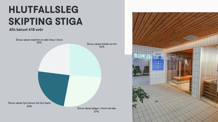 Í tilkynningu á vef Reykjavíkurborgar segir að við endurbætur á elsta hluta Vesturbæjarlaugar, sem gerðar hafi verið til að bæta aðgengi og öryggi, hafi tækifæri gefist til að hanna nýtt sánasvæði í nánu samtali við notendur. Í vor hafi gestum verið boðið að senda inn hugmyndir og alls hafi 75 tillögur borist. Í framhaldinu hafi 618 gestir svarað könnun þar sem eftirfarandi fjórar leiðir voru bornar saman: Önnur sánan þögul, í hinni má tala. Önnur sánan með ilm, hin án ilms. Önnur sánan fyrir konur, hin fyrir karla. Önnur sánan heitari en hin. Kynjaskipt fékk bæði flest jákvæð og neikvæð atkvæði Niðurstöðurnar hafi reynst mjög jafnar, en meirihluti hafi verið fyrir því að önnur sánan væri þögul en í hinni mætti tala og að önnur sánan væri heitari en hin. „Athygli vekur að sá kostur sem fékk flest jákvæð stig var mismunandi hitastig (1643 stig) og að sá kostur sem fékk fæst stig var ilmurinn (1456 stig). Þá mátti sjá að kynjaskipt sána fékk bæði flest einstök svör sem „best“ og „verst“, sem skýrir jafnar heildarniðurstöður.“ Reykjavíkurborg Útfærslan sem varð fyrir valinu taki mið af þessum niðurstöðum, það er að þögla sánan verði heitari, en í hinni megi spjalla. Skýrar óskir um fjölbreytni Þá segir að þó að ilm- og kynjaskiptar sánur hafi ekki fengið meirihluta í daglegri notkun hafi komið fram skýrar óskir um fjölbreytni. Ekki sé útilokað að slík útfærsla fái rými síðar, til dæmis með þemadögum, gusum eða tímabundinni kynjaskiptingu. Áfram verði lögð áhersla á gott samtal við notendur um þróun sánanna.