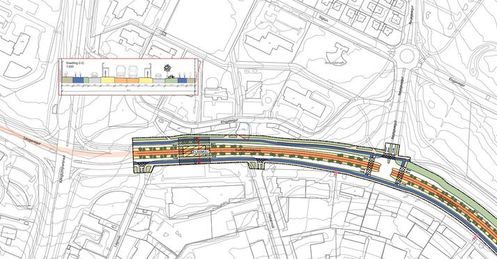 Stefnt er að því að tillagan fari til kynningar í skipulagsgátt í janúar en hún nær yfir um 40% af leið fyrstu lotu Borgarlínu. Áður hefur verið tekist á um áformin líkt og Vísir greindi frá þegar borgarráð afgreiddi tillögu um fyrsta hluta Borgarlínu til borgarstjórnar síðasta vor. Í tilkynningu frá Reykjavíkurborg um afgreiðslu tillögunnar sem umhverfis- og samgönguráð afgreiddi í gær eru raktar helstu breytingar sem boðaðar eru á umræddu svæði við Suðurlandsbraut. Þannig verði bætt við sérrými fyrir almenningssamgöngur á milli Skeiðarvogs og Lágmúla og verða þrjár borgarlínustöðvar við Glæsibæ, Laugardalshöll og Lágmúla. Þá verði hjóla- og göngustígum fjölgað sunnan brautarinnar og akreinum fyrir almenna bílaumferð fækkað úr fjórum í tvær, og verða akreinar þannig að mestu leyti einbreiðar nema við stór gatnamót. Þá er gert ráð fyrir að bílastæðum við Suðurlandsbraut 4 til 32 verði fækkað um þriðjung. Fækkun akreina og bílastæða við Suðurlandsbraut eru meðal þess sem fulltrúar minnihlutans lýsa mikilli óánægju með. Áformin „alvarleg aðför“ að fyrirtækjarekstri á svæðinu „Fulltrúarnir telja mikilvægt að fjölga sérakreinum fyrir almenningssamgöngur í Reykjavík en telja það vel mega útfæra án þess að þrengja að almennri umferð, einn fararmáti þurfi ekki að vega að öðrum. Fulltrúarnir lýsa jafnframt andstöðu við þau áform að fjarlægja um 70% bílastæða af svæðinu en á Suðurlandsbraut starfar fjöldi fyrirtækja og fjöldi borgarbúa sækir þangað verslun og þjónustu. Mikilvægt er að tryggja gott aðgengi að rekstri á svæðinu enda geta afleiðingar fyrirliggjandi deiliskipulags verið alvarlegar fyrir fyrirtækin á Suðurlandsbraut,“ segir meðal annars í bókun Sjálfstæðismanna en þeir vilja að deiliskipulagið verði endurhugsað frá grunni. Í tilkynningu borgarinnar er talað um að bílastæðum fækki um 30% en í bókun Sjálfstæðismanna er talað um 70%. Ekki hefur fengist staðfest í hverju munurinn liggur en hlutfallsins er ekki getið í fylgigögnunm málsins sem birtust með fundargerð. Samkvæmt tillögunni fer Borgarlínan um Suðurlandsbraut á tveimur miðjusettum sérakreinum fyrir almenningssamgöngur og er gert ráð fyrir göngu- og hjólastígum beggja vegna göturýmisins og gróðri á svæðum inn á milli.Reykjavíkurborg Framsóknarmenn greiddu einnig atkvæði gegn tillögunni og hafna þeirri útfærslu sem hún felur í sér um legu Borgarlínu um Suðurlandsbraut. „Um er að ræða alvarlega aðför að þjónustu- og verslunarrekstri á svæðinu, þar sem fjölmörg fyrirtæki hafa starfað og byggt upp starfsemi sína í áratugi. Nú þegar er mikill skortur á bílastæðum á svæðinu. Þessi tillaga er reist á óraunsærri sýn á samgöngumál og mikilvægi Suðurlandsbrautar sem einnar af lykilumferðaræðum borgarinnar. Fyrirliggjandi hugmyndir taka hvorki mið af nauðsynlegu aðgengi né viðkvæmum rekstraraðstæðum þessara fyrirtækja þar sem fækkun bílastæða er veruleg, og horfa fram hjá þeim samfélagslegu og efnahagslegu áhrifum sem slík truflun hefði í för með sér,“ segir í bókun Framsóknar. Framkvæmdir hefjist 2027 Fulltrúar meirihlutans fagna hins vegar áfanganum. „Við fögnum tillögu að deiliskipulagi göturýmis Suðurlandsbrautar sem verður nú sett í auglýsingu. Nýjar verklagsreglur eiga að tryggja að íbúar á svæðinu verði vel upplýstir um hana. Tillagan er hluti af 1. lotu Borgarlínu og er í samræmi við svæðisskipulag höfuðborgarsvæðisins og Aðalskipulag Reykjavíkur 2040. Tillagan er einnig í samræmi við þá yfirlýstu stefnu borgarinnar að efla vistvæna og virka samgöngumáta,“ segir í bókun meirihlutans. Áætlað er að framkvæmdir á Suðurlandsbraut vestan Grensásvegar standi yfir frá 2027 til 2029 og austan Grensásvegar frá 2028 til 2030.