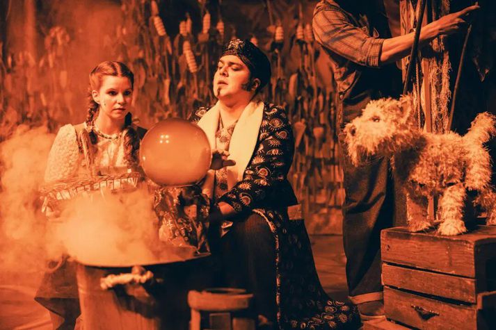 Fegurðardýrkun í Oz-landi Símon Birgisson skrifar 3. febrúar 2026 07:02 Þórey Birgisdóttir fer með aðalhlutverkið í sýningunni en hún túlkar stúlkuna Dóróteu frá Kansas. Borgarleikhúsið Nýjasta sýning Borgarleikhússins er barnaleikritið Galdrakarlinn í Oz eftir L. Frank Baum. Þetta er stór sýning með fjölda leikara. Ungir krakkar fá tækifæri til að sýna listir sínar í leik, söng og dansi og eldri leikarar, reynsluboltar í faginu, virðast skemmta sér vel í þessu klassíska verki sem hefur ýmsar tengingar við samtímann. Þetta er ekki uppsetning sem reynir að ögra heldur er skemmtunin í forgrunni og ekki teknir neinir sjensar. Galdrakarlinn í Oz – Borgarleikhúsið. 2. sýning 25. janúar 2026 Höfundur: L. Frank Baum. Leikstjóri: Þórunn Arna Kristjánsdóttir. Danshöfundur: Lee Proud. Leikmynd: Eva Signý Berger. Búningar: Júlíanna Steingrímsdóttir. Þýðing: Maríanna Clara Lúthersdóttir (leikrit) og Bragi Valdimar Skúlason (söngtextar). Barátta góðs og ills Í ævintýraríki takast á góð og ill öfl, nornir og galdramenn. Mitt í þessum átökum birtist, eins og þruma úr heiðskíru lofti (bókstaflega), lítið barn sem fær það hlutskipti í hendurnar að koma á friði. Til þess þarf barnið þó að ganga í gegnum ýmsar þrautir og treysta á hjálp annarra og sitt eigið innsæi. Maður kannast við þetta stef enda áhugavert hversu mikil áhrif hin klassíska barnasaga L. Frank Baum hefur haft á nútímabarnabókmenntir – til dæmis Harry Potter sögurnar. Eins og Harry Potter elst Dórótea, söguhetjan í Galdrakarlinum í Oz, ekki upp hjá foreldrum sínum heldur frænda sínum og frænku í afskekktum sveitabæ í Kansas. Besti vinur hennar er hundurinn Tótó og helsti óvinur hennar er frú Alfifa Möller, valdakona í þorpinu, sem nýtir áhrif sín og völd til að taka Tótó af Dóróteu. Þegar fellibylur gengur yfir kemst Dórótea ekki í skjól og leitar vars í einu útihúsanna ásamt hundinum sínum. En húsið tekst á loft í storminum og fýkur út í buskann alla leið upp í undraland regnbogans þar sem Dórótea og Tótó lenda í miklum ævintýrum og kynnast ýmsum furðuverum sem allar eiga það sameiginlegt að vera á leið til hins mikla galdramanns í Oz – hann er sá eini sem getur leyst úr vandræðum þeirra og komið Dórótheu aftur heim. Krakkarnir í sýningunni eru frábærir, sungu og dönsuðu af gleði og innlifun og brugðu sér í hin ýmsu hlutverk í sýningunni.Borgarleikhúsið Góðmennska fallega fólksins Eflaust átti Galdrakarlinn að vera einhvers konar andsvar við klassísku ævintýrum þeirra Grimms-bræðra sem allir þekktu á þeim tíma sem bókin kom út. Grimms-ævintýrin gátu verið ofbeldisfull og vægðarlaus (enda yfirleitt endurskrifuð í dag með breyttum áherslum). Galdrakarlinn í Oz var tilraun til að brjótast undan þessari gerð ævintýra og sýna heim sem væri bjartari og sakleysislegri. Það eru hins vegar ákveðnar klisjur í sögunni sem hafa alltaf farið í taugarnar á mér. Til dæmis eru skýr tengsl á milli fegurðar og innrætis, sem endurspeglar eflaust hugsunarháttinn á síðustu öld en eru dálítið á skjön í dag. Góða nornin lítur til dæmis út eins og þátttakandi í Ungfrú Ísland – ekta Disney-prinsessa, fallega máluð með skæra og bjarta rödd. Vonda nornin er hins vegar eldri, með dýpri rödd, illskan uppmáluð. Ef þetta væri heimfært á íslensk stjórnmál væri Kristrún Frostadóttir góða nornin en Inga Sæland (í meðförum Sóla í skaupinu) sú vonda. Dórótea er einnig eins og prinsessa klippt út úr Disney-ævintýri en karlarnir í verkinu eru allir sýndir í hálfskoplegu ljósi, annaðhvort illa innrættir eða veikgeðja. Galdrakarlinn í Oz (Vilhelm Netó) er auðvitað bara svikahrappur og af því að hann er vondur þá tilheyrir hann ekki ríki fallega fólksins (eins og vonda nornin) heldur er hann í yfirþyngd og talar með hreim. Aðstoðarmaður hans (Ernesto Camilo Valdes) er dökkur á hörund og líkjast þeir félagar einna helst illmennum í James Bond-mynd. Hinir karlmennirnir – fuglahræðan, blikkmaðurinn og ljónið – eru allir hálfgerðir gallagripir sem skilja að lokum Dóróteu eftir eina í lokauppgjöri hennar við vondu nornina. Vilhelm Neto fer með hlutverk galdrakarlsins í Oz.Borgarleikhúsið Grænt eða rautt? Það kemur mér ekkert á óvart að Galdrakarlinn skuli hafa verið endurgerður með nýjum áherslum í hinum fræga Wicked-söngleik (og bíómyndum). Sagan sjálf (líkt og flest ævintýri) eldist ekkert sérlega vel. Það eru eflaust pólitískar vísanir í upprunalegt ævintýri Baum – fuglahræðan, blikkmaðurinn og huglausa ljónið geta verið táknmyndir hinna vinnandi stétta sem skortir hugrekki, vit og kjark til að rísa upp og bylta þjóðfélaginu. Galdrakarlinn í Oz – svikahrappurinn í Smaragðsríkinu – sem heldur þegnum sínum gíslum með blekkingum og glansmynd er ádeila á kapítalisma og einræði (þó blekkingarliturinn í Bandaríkjunum í dag sé ekki grænn heldur rauður). Án þess að maður sé að krefjast þess að barnasýning í Borgarleikhúsinu verði að einhverri pólitískri ádeilu þá fannst mér sýningin óþarflega hefðbundin og varkár í allri nálgun. Sviðsmyndin (Eva Signý Berger) var til dæmis frekar gamaldags og tilraun til að mála upp Kansas í svarthvítum litum með lýsingu heppnaðist ekki alveg í upphafi verksins. Yngri áhorfendur þekkja eflaust Wicked-myndirnar betur en upprunalegu sögurnar og þar er allavega snúið aðeins upp á klisjurnar og hinar stöðluðu hugmyndir um hver sé góður/vondur – ekki ósvipað og Shrek-myndirnar gerðu á sínum tíma. Maður fær nánast á tilfinninguna að þessi sýning sé bara sett upp til að fylla upp í eyðu í dagskránni - það er ekkert nýtt í þessari uppf