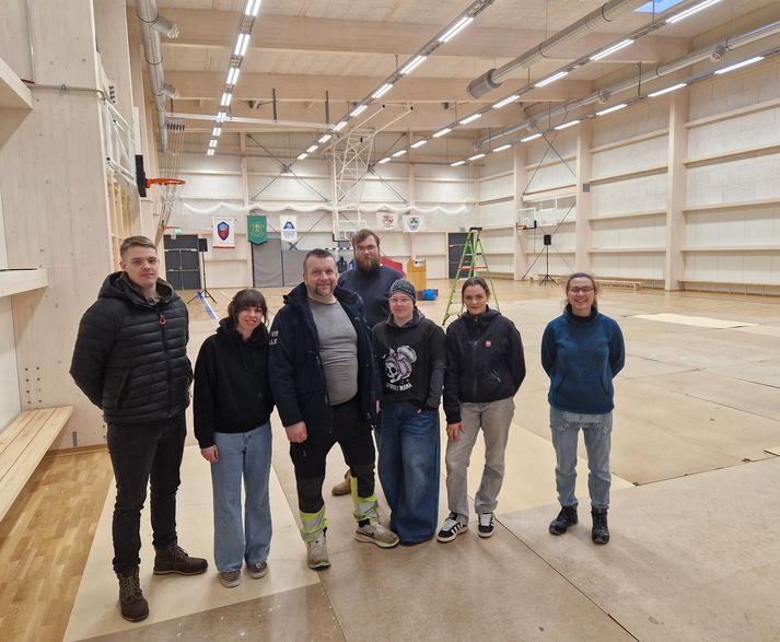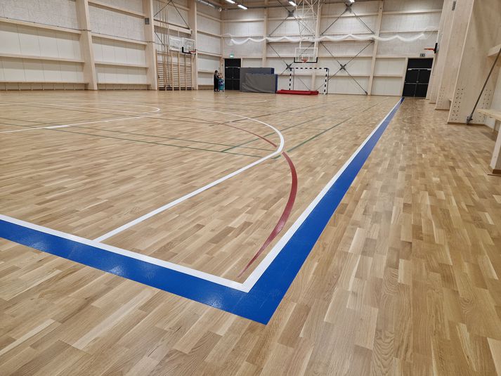 Það er Dalabyggð, sem byggir nýja íþróttamannvirkið, sem er glæsilegt í alla staði með frábæra aðstöðu til íþrótta- og sundiðkunar, auk líkamsræktar. Vígsluathöfnin hefst klukkan 14:30 á eftir. Björn Bjarki Þorsteinsson er sveitarstjóri Dalabyggðar. „Við erum í rauninni að tala um íþróttamiðstöð frá A til Ö, þar að segja, það verður íþróttasalur, löglegur körfuboltavöllur, síðan þreksalur og svo útisvæði þar sem verður sundlaug, tveir heitir pottar, kaldur pottur, vaðlaug fyrir krakkana og sánahús,” segir Björn Bjarki. Þetta er ótrúlega vel gert hjá ykkur í ekki stærra sveitarfélagi. „Já, sveitarstjórnin hefur verið gríðarlega samhent í því að koma þessu á. Auðvitað er þetta gríðarlega umfangsmikið verkefni fyrir tæplega 700 manna samfélag en metnaðurinn er til staðar hér í Dölum og við vildum gera þetta vel, samfélaginu til heilla til frambúðar,” segir Björn Bjarki. Íþróttamannvirkið er allt hið glæsilegasta.Aðsend Við vígslu hússins á eftir verða forsetahjónin meðal gesta og Eygló Fanndal Sturludóttir Íþróttamaður ársins 2025 og fulltrúar frá ÍSÍ, UMFÍ sem og verktökum hússins. Séra Snævar Jón Andrjesson, blessar mannvirkið og þá starfsemi sem í því verður. Löglegur körfuboltavöllur er í húsinu.Aðsend „Þannig að það verða stutt og góð ávörp og svo gæðum við okkur á tertu og síðan labbar fólk um húsið og skoðar,” segir sveitarstjórinn að lokum. Nokkrir starfsmenn Dalabyggðar í nýja húsinu, sem voru að gera allt klárt í gær fyrir vígsluna í dag.Aðsend Heimasíða Dalabyggðar
