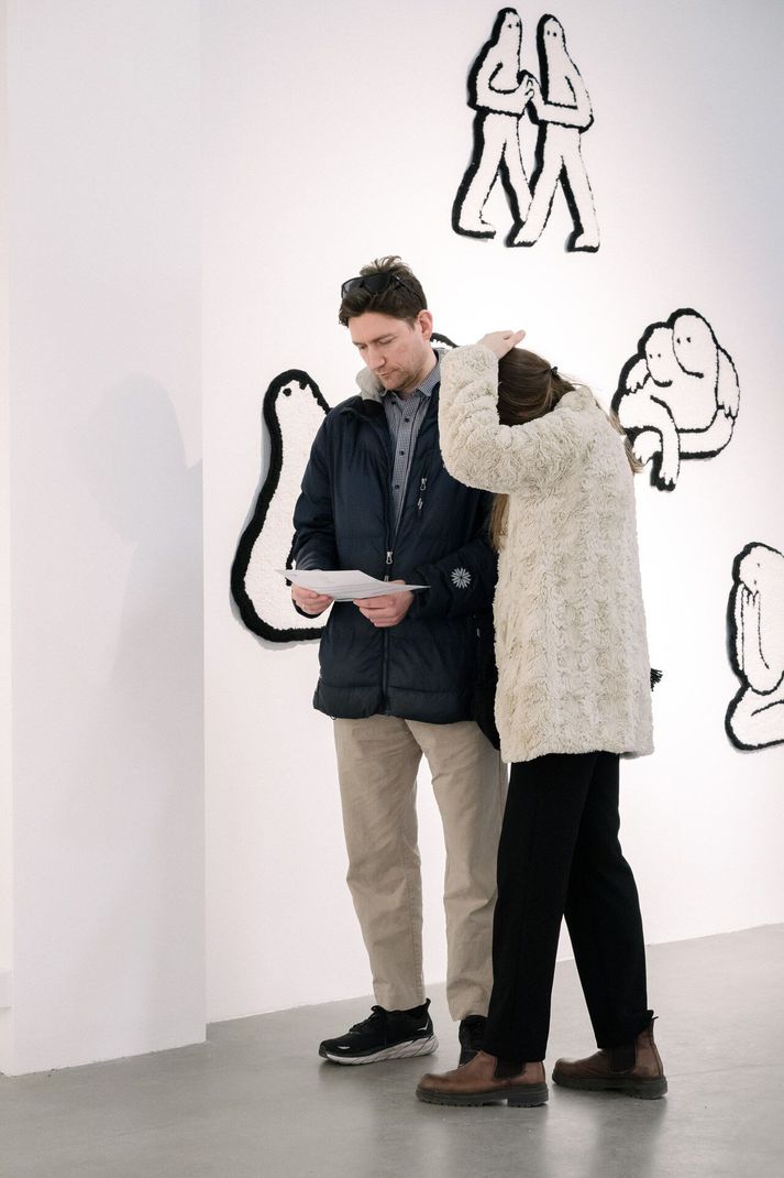 Sýningin opnaði á Valentínusardaginn sjálfan 14. febrúar í Gallery Port á Hallgerðargötu 19-23. Það eru þau Frosti Gnarr, Unnar Ari Baldvinsson og Comfortable Universe sem eiga verkin á sýningunni. Á sýningunni Throuple eru þessir listamenn öll komin í eina sæng og hvert þeirra tekur sitt pláss en öll bjóða þau gestum sinn faðm. Laugardaginn 7. mars fer fram listamannaspjall og lokahóf á sýningunni. „Listamannaspjallið milli Frosta Gnarr og Unnars Ara Baldvinssonar fer fram klukkan 17. Listamannatvíeykið sem skipar Comfortable Universe verða fjarri góðu gamni, enda búsett í Úkraínu. Comfortable Universe skipa hjónin Óskar Hallgrímsson og Ma Riika. Þau hafa haldið sýningar hér á landi og víðar síðan 2021. Þau búa og starfa í Úkraínu. Hún hefur tekið þátt í fjölda samsýninga og haldið einkasýningar víðsvegar ásamt því að vinna sem húðflúrari í lausaverkum. Óskar er grafískur hönnuður og hefur starfað sem ljósmyndari síðastliðin 18 ár, á Íslandi, víða um heim og nú síðast í stríðinu í Úkraínu. Unnar Ari Baldvinsson stundaði nám við Myndlistarskólann í Reykjavík og framhaldsnám í Accademia Italiana og Florence University of Arts á Ítalíu þar sem hann útskrifaðist árið 2013. Hann hefur haldið fjölda einkasýninga og samsýninga á Íslandi og erlendis. Frosti Gnarr er myndlistarmaður og ljósmyndari með aðsetur á Íslandi. Verk hans kanna mörk nærveru, sjálfsmyndar og eftirlits í samtímanum, þar sem hann vinnur bæði með stafrænar og hefðbundnar ljósmyndaaðferðir. Verk hans hafa verið sýnd í ólíkum samhengi og hann vinnur jafnframt þvert á skapandi greinar við hönnun, útgáfu og menningarverkefni,“ segir í fréttatilkynningu. Hér má sjá vel valdar myndir frá opnun: Árni Már og Sveinbjörn Pálsson.Elvar Þór Baxter Rósa Björk Gunnarsdóttir í knúsi.Elvar Þór Baxter Erla Hlín og Hrafntinna Jóga.Elvar Þór Baxter Hrafntinna Jóga og Frosti Gnarr.Elvar Þór Baxter Sveinn Kjartansson.Elvar Þór Baxter Baldvin GuðmundssonElvar Þór Baxter Þorvaldur Jónsson myndlistarmaður og Kría Kamilla Þorvaldsdóttir.Elvar Þór Baxter Erla Hlín Sigríðardóttir, Hrafntinna Jóga og Frosti Gnarr.Elvar Þór Baxter Unnar Ari Baldvinsson og Skarphéðinn Bergþóruson, annar eigandi Gallery Port.Elvar Þór Baxter Myndir af verkum allra listamanna.Elvar Þór Baxter Kamilla Gnarr og Rósa Björk Gunnarsdóttir.Elvar Þór Baxter Glæsiparið Unnar Ari og Sandra Ýr Dungal, með krökkunum Urði og Dýra.Elvar Þór Baxter Natka Klimowicz.Elvar Þór Baxter Rósa Björk í góðum félagsskap.Elvar Þór Baxter Þorsteinn Klements og Ronja Axeldóttir.Elvar Þór Baxter Frosti Gnarr Jónsson.Elvar Þór Baxter Áhugasamir gestir í gír.Elvar Þór Baxter Kamilla Gnarr, Erla Hlín og Hrafntinna Jóga.Elvar Þór Baxter Þorsteinn Klements.Elvar Þór Baxter Skvísur.Elvar Þór Baxter Unnar, Frosti, Jónatan Grétarsson og Kamilla Gnarr.Elvar Þór Baxter Friðrik Árnason, Jónatan og Unnar Ari.Elvar Þór Baxter Glæsilegur gestur.Elvar Þór Baxter Árni á spjalli við listunnendur.Elvar Þór Baxter Dylan.Elvar Þór Baxter Nonni Gnarr á spjalli.Elvar Þór Baxter Skvís.Elvar Þór Baxter Árni Már og Jónatan.Elvar Þór Baxter Sveinbjörg Pétursdóttir.Elvar Þór Baxter List og fjör.Elvar Þór Baxter Frosti Gnarr, Hrafntinna Jóga, Hilmir til vinstri og Arnar til hægri.Elvar Þór Baxter Arnaldur Hjartarson og Ólöf D. Sigurbjörnsdóttir.Elvar Þór Baxter Sætur hundur.Elvar Þór Baxter
