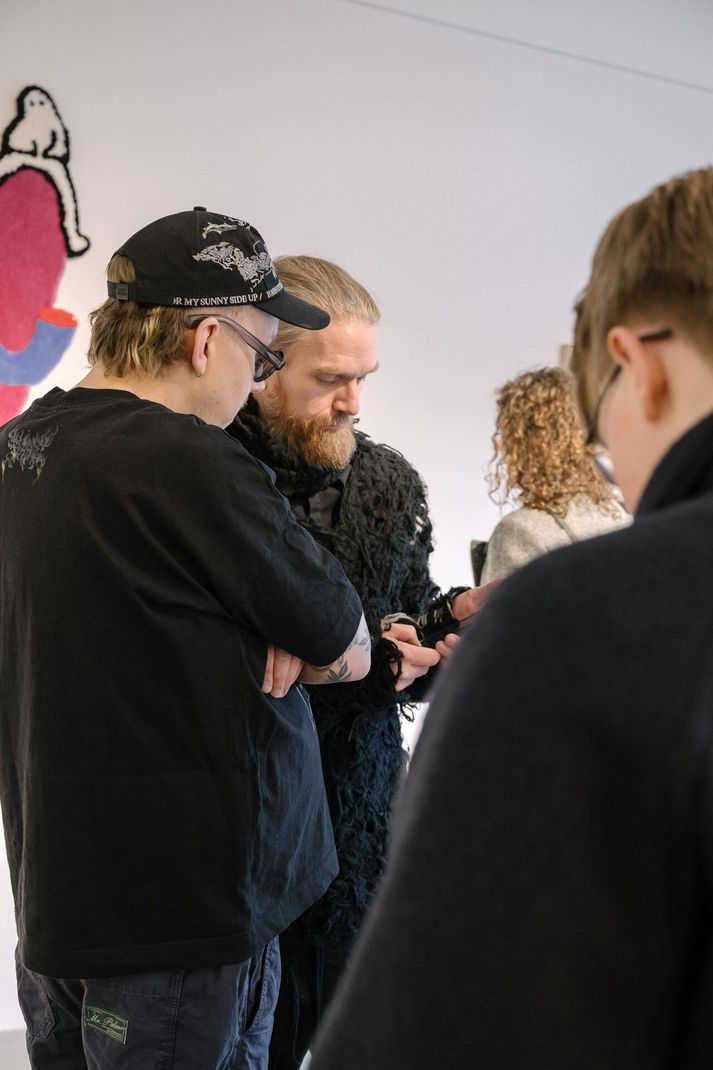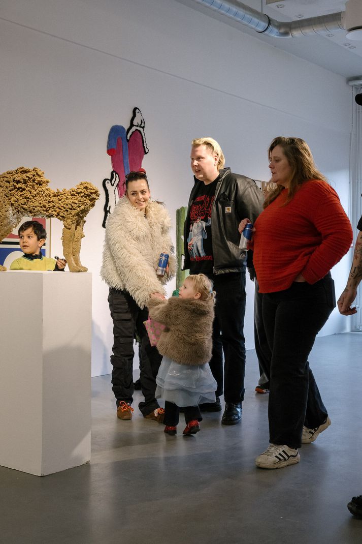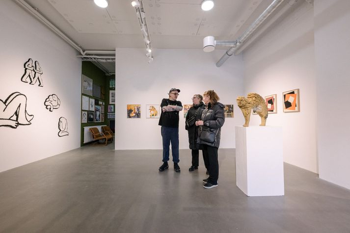 Gjöfull trekantur Dóra Júlía Agnarsdóttir skrifar 4. mars 2026 15:00 Það var líf og fjör á opnun í Gallery Port á Valentínusardaginn. Elvar Þór Baxter Það var líf og fjör í Gallery Port á dögunum þegar sýningin Throuple opnaði með pomp og prakt. Listunnendur komu þar saman og upplifðu fjölbreytileikann. Sýningin opnaði á Valentínusardaginn sjálfan 14. febrúar í Gallery Port á Hallgerðargötu 19-23. Það eru þau Frosti Gnarr, Unnar Ari Baldvinsson og Comfortable Universe sem eiga verkin á sýningunni. Á sýningunni Throuple eru þessir listamenn öll komin í eina sæng og hvert þeirra tekur sitt pláss en öll bjóða þau gestum sinn faðm. Laugardaginn 7. mars fer fram listamannaspjall og lokahóf á sýningunni. „Listamannaspjallið milli Frosta Gnarr og Unnars Ara Baldvinssonar fer fram klukkan 17. Listamannatvíeykið sem skipar Comfortable Universe verða fjarri góðu gamni, enda búsett í Úkraínu. Comfortable Universe skipa hjónin Óskar Hallgrímsson og Ma Riika. Þau hafa haldið sýningar hér á landi og víðar síðan 2021. Þau búa og starfa í Úkraínu. Hún hefur tekið þátt í fjölda samsýninga og haldið einkasýningar víðsvegar ásamt því að vinna sem húðflúrari í lausaverkum. Óskar er grafískur hönnuður og hefur starfað sem ljósmyndari síðastliðin 18 ár, á Íslandi, víða um heim og nú síðast í stríðinu í Úkraínu. Unnar Ari Baldvinsson stundaði nám við Myndlistarskólann í Reykjavík og framhaldsnám í Accademia Italiana og Florence University of Arts á Ítalíu þar sem hann útskrifaðist árið 2013. Hann hefur haldið fjölda einkasýninga og samsýninga á Íslandi og erlendis. Frosti Gnarr er myndlistarmaður og ljósmyndari með aðsetur á Íslandi. Verk hans kanna mörk nærveru, sjálfsmyndar og eftirlits í samtímanum, þar sem hann vinnur bæði með stafrænar og hefðbundnar ljósmyndaaðferðir. Verk hans hafa verið sýnd í ólíkum samhengi og hann vinnur jafnframt þvert á skapandi greinar við hönnun, útgáfu og menningarverkefni,“ segir í fréttatilkynningu. Hér má sjá vel valdar myndir frá opnun: Árni Már og Sveinbjörn Pálsson.Elvar Þór Baxter Rósa Björk Gunnarsdóttir í knúsi.Elvar Þór Baxter Erla Hlín og Hrafntinna Jóga.Elvar Þór Baxter Hrafntinna Jóga og Frosti Gnarr.Elvar Þór Baxter Sveinn Kjartansson.Elvar Þór Baxter Baldvin GuðmundssonElvar Þór Baxter Þorvaldur Jónsson myndlistarmaður og Kría Kamilla Þorvaldsdóttir.Elvar Þór Baxter Erla Hlín Sigríðardóttir, Hrafntinna Jóga og Frosti Gnarr.Elvar Þór Baxter Unnar Ari Baldvinsson og Skarphéðinn Bergþóruson, annar eigandi Gallery Port.Elvar Þór Baxter Myndir af verkum allra listamanna.Elvar Þór Baxter Kamilla Gnarr og Rósa Björk Gunnarsdóttir.Elvar Þór Baxter Glæsiparið Unnar Ari og Sandra Ýr Dungal, með krökkunum Urði og Dýra.Elvar Þór Baxter Natka Klimowicz.Elvar Þór Baxter Rósa Björk í góðum félagsskap.Elvar Þór Baxter Þorsteinn Klements og Ronja Axeldóttir.Elvar Þór Baxter Frosti Gnarr Jónsson.Elvar Þór Baxter Áhugasamir gestir í gír.Elvar Þór Baxter Kamilla Gnarr, Erla Hlín og Hrafntinna Jóga.Elvar Þór Baxter Þorsteinn Klements.Elvar Þór Baxter Skvísur.Elvar Þór Baxter Unnar, Frosti, Jónatan Grétarsson og Kamilla Gnarr.Elvar Þór Baxter Friðrik Árnason, Jónatan og Unnar Ari.Elvar Þór Baxter Glæsilegur gestur.Elvar Þór Baxter Árni á spjalli við listunnendur.Elvar Þór Baxter Dylan.Elvar Þór Baxter Nonni Gnarr á spjalli.Elvar Þór Baxter Skvís.Elvar Þór Baxter Árni Már og Jónatan.Elvar Þór Baxter Sveinbjörg Pétursdóttir.Elvar Þór Baxter List og fjör.Elvar Þór Baxter Frosti Gnarr, Hrafntinna Jóga, Hilmir til vinstri og Arnar til hægri.Elvar Þór Baxter Arnaldur Hjartarson og Ólöf D. Sigurbjörnsdóttir.Elvar Þór Baxter Sætur hundur.Elvar Þór Baxter Myndlist Samkvæmislífið Menning Sýningar á Íslandi Mest lesið Lengsti klukkutími ævinnar Gagnrýni Fyrirsætan og Dallas-leikkonan Annabel Schofield látin Bíó og sjónvarp Verður að fara inn í nýjan áratug með stæl Lífið Tóti fékk bílinn lánaðan frá Líf Magneudóttur Lífið Kattavinafélagið minnist dýravinarins Davíðs Lífið Sviðshöfundar blótuðu þorrann í góubyrjun Lífið Slakur með 62 milljón króna hálsmen Tíska og hönnun Ástin það besta í heiminum Tónlist „Búinn að setja miklu meira í þennan gám heldur en ég tók út“ Lífið Nærföt og náttföt rjúka út í nýrri vefverslun Lindex Lífið samstarf Fleiri fréttir Gjöfull trekantur Þessi hljóta tilnefningu til Myndlistarverðlauna Ástin blómstraði á sýningu Tolla „Sorglegt að sjá svona flottan feril“ á þessum stað Eva Rún og Jón Kalman tilnefnd til bókmenntaverðlauna Norðurlandaráðs Andrew á Louvre Kinký bangsar og leðurklæddir kroppar „Ósmekkleg“ meðferð á eldri leikurum og álagið keyrt upp Forsetinn, fjölmiðlaskvísur og kempur í Borgarnesinu Fimm frækin fylltu Landsbankahúsið „Ný sýn, nýr heimur“ Metnaðarfull Mamma Mia í Hafnarfirðinum Seldu upp og undirrituðu samning til 666 ára Alaska og Birnir sigursæl Vetrarhátíðin sjaldan verið stærri Ólöf og Magnús ástfangin á frumsýningu Hestastelpa úr sveit og sjóðheitur hönnuður Pétur Gunnarsson sæmdur heiðursdoktorsnafnbót „Ljúfsárt og svolítið erfitt að kveðja kvikmyndahúsin“ Sjá meira