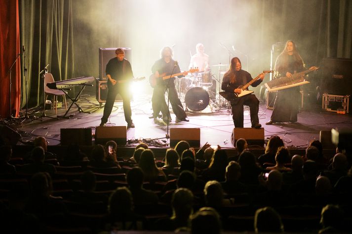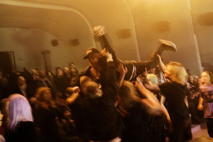 Myndaveisla: Skagarokk haldið í fyrsta skipti síðan 1994 Freyja Þórisdóttir skrifar 11. apríl 2026 13:30 Það var standandi partí þegar þungarokksaðdáendur flykktust í Bíóhöllina á Akranesi í gær. Blik Studio Black Sabbath rokkmessa hófst á Akranesi í gær, föstudaginn 10. apríl, þar sem Jenni í Brainpolice, Franz úr Ensími og Dr. Spock, Hallur úr HAM og Brimbrot og Flosi úr HAM stigu á svið. Þá stigu einnig á stokk sveitirnar Bastarður og Múr. Í kvöld verður dagskráin með léttara móti en þá koma fram Hjálmar, Spacestation og Oyama. Skagarokk var fyrst haldið í Bíóhöllinni á Akranesi árið 1989 og svo aftur 1990. Þar komu mestmegnis fram hljómsveitir frá Akranesi en tónlistarlífið á Akranesi þá var mjög blómlegt. Síðan eru liðin mörg ár og komið að fyrsta Skagarokkinu í 32 ár og nú er það ekki eitt kvöld heldur tvö, „Festival í anda Skagarokks 92,“ segir útvarpsmaðurinn og tónlistargúrúið Ólafur Páll Gunnarsson. Tónlistarmenn og hljómsveitir á borð Jethro Tull, Jet Black Joe og Black Sabbath hafa spilað á Skagarokk en Bubbi Morthens var meðal þeirra sem komu fram í Bíóhöllinni árið 1994. Hann segir ennþá vera til miða á tónleika kvöldsins og að bandið Hjálmar muni loka hátíðinni með glæsilegum tónleikum og bætir við að „síðustu tónleikar Hjálma á Akranesi hafi einmitt verið í smekkfullri Bíóhöllinni sumarið 2019 og að margir hafi beðið eftir að þeir myndu koma aftur“. Hér fyrir neðan er sannkölluð myndaveisla frá gærkvöldinu. Þetta glæsilega hljóðfæri kallast á ensku Keytar en líkt og glöggir átta sig á er orðið samsett af ensku orðunum „guitar“ og „key“. Hljómsveitirnar sem fram komu í gær eru skipaðar hetjum úr þekktum íslenskum þungarokkshljómsveitum. Meðal þeirra voru trommararnir Ari Steinarsson og Hallur Ingólfsson.Blik Studio Við íslendingar eigum okkar Black Sabbath í Black Sabbath rokkmessubandinu sem er skipað hetjum úr íslensku rokksenunni: Jenni (Brainpolice), Franz (Ensími, Dr. Spock), Hallur (HAM, Brimbrot, 13) og Flosi (HAM).Blik Studio Siggi Sverris sem hafði verið með þungarokksþáttinn Bárujárn á Rás 2 og var ritstjóri Skagablaðsins var svo maðurinn á bakvið Skagarokk þegar það var stærst.Blik Studio Almennt er talið að hópsvif, á ensku crowd surfing, hafi fyrst átt sér stað þegar tónlistarmaðurinn Iggy Pop kom fram á Cincinnati Summer Pop Festival í júní 1970. Þar stökk hann út í áhorfendaskarann og var borinn á höndum áhorfendanna.Blik Studio Ófá gítarsóló ómuðu um sal Bíóhallarinnrar á Akranesi í gær, áhorfendum til mikillar gleði. Blik Studio Akranes Tónleikar á Íslandi Tónlist Mest lesið Ekki er allt sem sýnist í Dimmu Tónlist Steig fram eftir að sex ára dóttir hennar varð fyrir rasisma Lífið Mildari og þolinmóðari við sjálfa sig eftir greininguna Lífið Brúðkaupsdagurinn skilaði rúmum þremur milljónum Lífið Leitaði upprunans og fékk óvænta frænku í heimsókn Lífið Fréttatía vikunnar: Bó, vatn og vopnahlé Lífið Lærði að lifa lífinu upp á nýtt eftir alvarleg veikindi Lífið Tæplega helmingur tilnefndra leikara til Eddunnar erlendur Bíó og sjónvarp Tónlist sem tekur á skömm og ótta með nokkrum blótsyrðum Lífið Páll Edwald og Selma Eir trúlofuð Lífið Fleiri fréttir Myndaveisla: Skagarokk haldið í fyrsta skipti síðan 1994 Ekki er allt sem sýnist í Dimmu Sautján þúsund miðar seldir á Kaleo Stebbi Jak hættur í Dimmu: „Fólk sem ég taldi vera vini mína hefur brugðist á öllum stigum málsins“ Sex þúsund miðar seldust upp á innan við mínútu Barnsleg gleði, kynþokki og óhugnaður Björk treður upp í Hafnarfirði í sumar „Þú munt verða stórkostleg söngkona“ Söguleg stund í KR heimilinu Falinn gjóður vann Músíktilraunir Segist skilin út undan vegna MAGA-tengingar sinnar Elegans og elskhugar í eftirpartýi hjá Laufeyju Óvæntustu deilur ársins: „Ég hata ekki börn“ Jay-Z breytir um nafn... aftur Laufey sigursælust og Todmobile heiðruð Birnir fær gullplötu fyrir Dyrnar Hringdu kannski-stjarnan orðin mamma Áhrifamestu augnablikin í Kórnum: Flókin líkamsímynd, Bieber-aðdáun og sungið á íslensku Herra Hnetusmjör er söngvari ársins „Takk fyrir mig Ísland, mitt draumaland“ Myndaveisla: Töfrandi stemning á stórtónleikum Laufeyjar Boy George keppir fyrir San Marínó Hollt að sinna húsverkum og fá engin hrós Opna Laufeyjarverslun fyrir tónleikana „Þú ert stærsta súperstjarnan á plánetunni jörð“ Þekktasta söngleikjalag allra tíma í nýjum búning Ástin það besta í heiminum Sjá meira