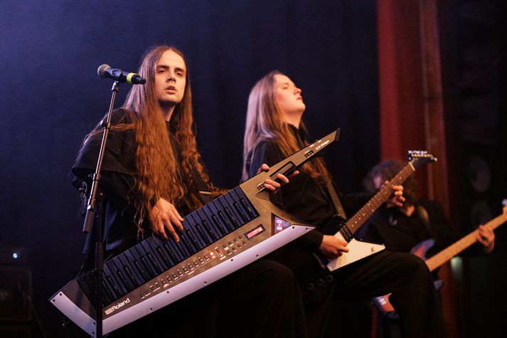 Skagarokk var fyrst haldið í Bíóhöllinni á Akranesi árið 1989 og svo aftur 1990. Þar komu mestmegnis fram hljómsveitir frá Akranesi en tónlistarlífið á Akranesi þá var mjög blómlegt. Síðan eru liðin mörg ár og komið að fyrsta Skagarokkinu í 32 ár og nú er það ekki eitt kvöld heldur tvö, „Festival í anda Skagarokks 92,“ segir útvarpsmaðurinn og tónlistargúrúið Ólafur Páll Gunnarsson. Tónlistarmenn og hljómsveitir á borð Jethro Tull, Jet Black Joe og Black Sabbath hafa spilað á Skagarokk en Bubbi Morthens var meðal þeirra sem komu fram í Bíóhöllinni árið 1994. Hann segir ennþá vera til miða á tónleika kvöldsins og að bandið Hjálmar muni loka hátíðinni með glæsilegum tónleikum og bætir við að „síðustu tónleikar Hjálma á Akranesi hafi einmitt verið í smekkfullri Bíóhöllinni sumarið 2019 og að margir hafi beðið eftir að þeir myndu koma aftur“. Hér fyrir neðan er sannkölluð myndaveisla frá gærkvöldinu. Þetta glæsilega hljóðfæri kallast á ensku Keytar en líkt og glöggir átta sig á er orðið samsett af ensku orðunum „guitar“ og „key“. Hljómsveitirnar sem fram komu í gær eru skipaðar hetjum úr þekktum íslenskum þungarokkshljómsveitum. Meðal þeirra voru trommararnir Ari Steinarsson og Hallur Ingólfsson.Blik Studio Við íslendingar eigum okkar Black Sabbath í Black Sabbath rokkmessubandinu sem er skipað hetjum úr íslensku rokksenunni: Jenni (Brainpolice), Franz (Ensími, Dr. Spock), Hallur (HAM, Brimbrot, 13) og Flosi (HAM).Blik Studio Siggi Sverris sem hafði verið með þungarokksþáttinn Bárujárn á Rás 2 og var ritstjóri Skagablaðsins var svo maðurinn á bakvið Skagarokk þegar það var stærst.Blik Studio Almennt er talið að hópsvif, á ensku crowd surfing, hafi fyrst átt sér stað þegar tónlistarmaðurinn Iggy Pop kom fram á Cincinnati Summer Pop Festival í júní 1970. Þar stökk hann út í áhorfendaskarann og var borinn á höndum áhorfendanna.Blik Studio Ófá gítarsóló ómuðu um sal Bíóhallarinnrar á Akranesi í gær, áhorfendum til mikillar gleði. Blik Studio