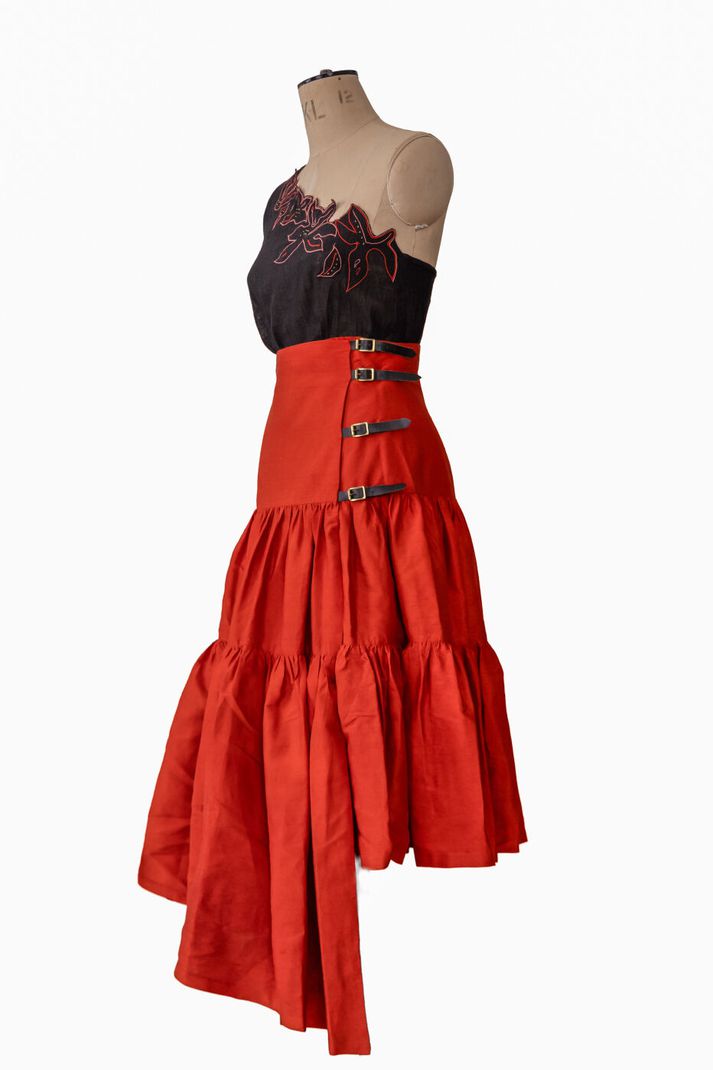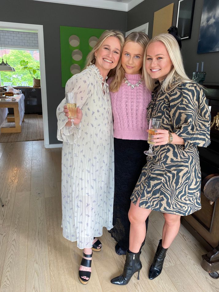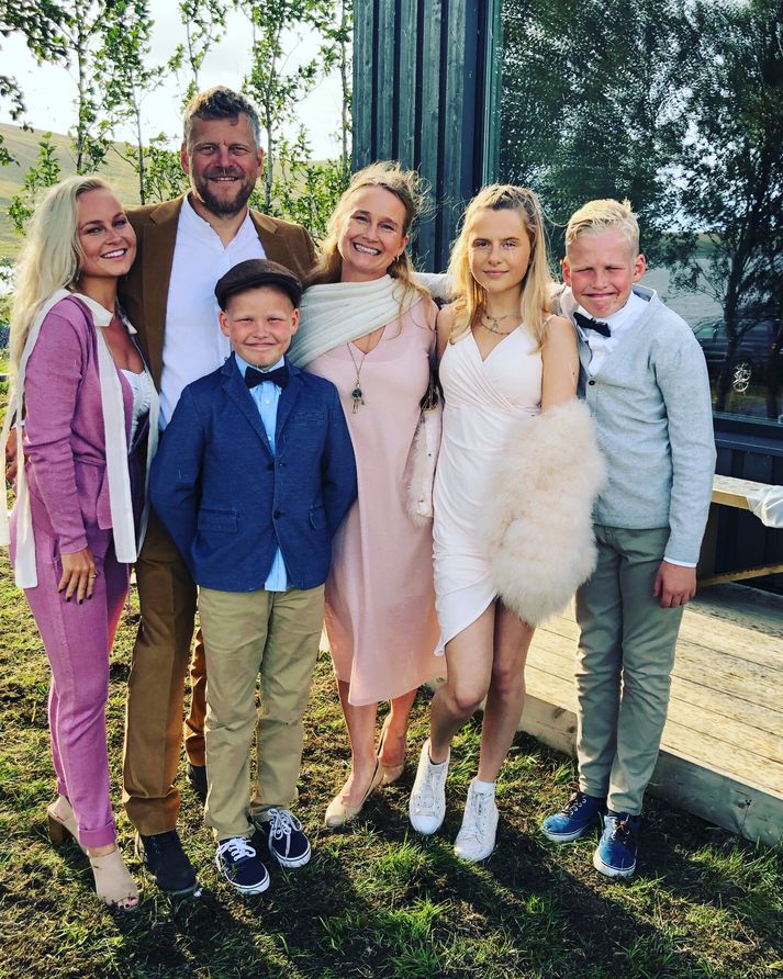 María Ólafsdóttir er fjögurra barna móðir búsett í Vesturbænum og fædd árið 1968. Hún er gift Vigfúsi Birgissyni ljósmyndara og listin flæðir um tilveru og hversdagsleika fjölskyldunnar. María Ólafs á fjögur börn, tvö barnabörn og er gift Vigfúsi Birgissyni ljósmyndara. Hér er hún með dóttursyni sínum Hugo. Aðsend Gróði aldrei verið útgangspunktur Hún er sprenglærð og hefur komið víða við í heimi tísku og hönnunar. Júnía Lín vakti mikla athygli þegar hún klæddist einstaklega fallegum kjól á tónleikum Laufeyjar tvíburasystur hennar en í ljós kom að hann var úr smiðju Maríu. Það er heldur betur saga að segja frá upphafi þeirrar tískulínu. „Ég og Lin Wei mamma Laufeyjar og Júníu erum góðar vinkonur. Hún er frá Peking og við fórum einu sinni saman út. Það var mikið ævintýri og við áttum frábæra tíma þar sem við fórum saman að skoða hin ýmsu efni,“ segir María en hún fer varla erlendis án þess að stoppa í efnabúðum. View this post on Instagram A post shared by Junia (@junialin) „Við hittum alls konar kínverska framleiðendur og ég lét þá fá nokkrar flíkur til að prófa að framleiða. Sumt var ekki hægt að klára úti og einhverjar flíkur lauk ég við heima,“ segir María og bætir við að þegar línan var tilbúin hafi hún sýnt hana tvisvar. Þegar fólk fór að sýna flíkunum áhuga fann hún að hún var ekki tilbúin að láta þær frá sér. „Ég fann að þetta var eins og börnin mín. Ég var búin að leggja ótrúlega mikla vinnu í þetta og gat eiginlega ekki hugsað mér að selja þetta. Gróði hefur aldrei verið útgangspunktur hjá mér ég verð að viðurkenna það. Ánægjan af því að skapa er aðalatriðið. Þetta er einhver þörf innra með mér, að handfjatla arfleifð og efni og nostalgían er umlykjandi.“ Glerhnappar úr kastala og innblástur frá þjóðbúningnum Þegar hún segir ótrúlega mikla vinnu þá meinar hún hvert orð. „Margt af þessu er handbróderað með hefðbundnum íslenskum munstrum sem ég hafði fundið á Þjóðminjasafninu. Ég lét útbúa íslenskt silfur til að skreyta kjólana með og búa til skartgripi og belti við. Ég notaði glerhnappa í ákveðna kjóla og þeir eru fengnir úr kastala sem var verið að tæma í Suður-Frakklandi,“ segir María brosandi. Ævintýrin elta hana uppi og það er eins og örlög hennar séu tískan. Kjólarnir hennar Maríu eru listaverk.Vísir/Vilhelm „Ég fékk þetta tækifæri í gegnum vini mína sem fengu að tæma þennan kastala. Þau réttu mér poka með alls konar skemmtilegu og leyfðu mér að sitja úti í horni og fara í gegnum hann. Ég var í áfalli að skoða allt þetta efni og allt þetta skraut sem þau þurftu að losna við. Allt var þetta líklega frá aldamótunum 1900. Þetta var náttúrulega súrrealískt fyrir mig.“ Fortíð og samtíð í eina sæng María stóð fyrir annarri sýningu á Þjóðminjasafninu þar sem hana langaði að sýna hvernig hún væri að vissu leyti að vísa í íslenska arfleifð. María Ólafsdóttir leikur sér með vísanir í fortíðina í kjólunum sem hún hannar.Vísir/Vilhelm „Daginn sem ég opna sýninguna er verið að halda upp á Þjóðbúningadaginn á Þjóðminjasafninu og ég hugsa með mér: „Guð minn góður, ég fæ þetta fólk alveg brjálað á móti mér yfir því að ég sé að nota ákveðna hluti úr þjóðbúningnum.“ En þau voru svo ánægð og greinilega ánægð með nálgunina. Ég var ofboðslega glöð að ég væri ekki að gera þetta í óþökk neins.“ Hið gamla og hið nýja blandast skemmtilega innra með Maríu. „Mér finnst að maður megi nota íslenska þjóðbúninginn í bland við annað. Ég nota til dæmis stokkabeltið mitt mikið við alls konar síðkjóla og vestið eitt og sér við aðrar flíkur. Fyrir mér er mjög fallegt að nota arfleifðina á fjölbreyttan máta. Það er alltaf smá togstreita innra með mér, litla ævintýrabarnið sem vill hoppa út í næstu á og láta þetta reddast og svo er það hinn karakterinn sem segir bíddu nú aðeins hæg,“ segir María og skellir upp úr. „Það er fjögurra barna móðirin sem talar þar.“ María og Vigfús ásamt börnum sínum fjórum. Frá vinsti: Vaka, Ísak Eldar, Anna Camilla og Thor Ólafur.Aðsend Umkringd tískudrottningum Móðir Laufeyjar og Júníu á kjólinn sem Júnía klæddist á tónleikum tvíburasystur sinnar. „Kjóllinn fór Júníu náttúrulega ofboðslega vel og það var virkilega gaman að sjá þennan gamla vin kominn á Júníu. Þá fór ég að hugsa hvar allt þetta væri eiginlega, ég er búin að geyma megnið af þessu og fann það til úr geymslunni. Ég bauð svo Laufeyju og Júníu að koma í heimsókn að kíkja á hina kjólana líka og það var svo skemmtilegt að sjá hvað þeim finnst þetta fallegt. Þær fengu einhverjar flíkur með sér og það verður gaman að fylgjast með því hvort þær klæðist þessu á komandi tímum,“ segir María brosandi. Vaka og Anna Camilla dætur Maríu eru miklar tískudrottningar og hafa löngum vakið athygli fyrir einstaka kjóla, sem er auðvitað úr smiðju móðir þeirra. María ásamt dætrum sínum Önnu Camillu og Vöku.Aðsend „Við höfum brallað alls konar saman eins og að setja saman kjóla á engum tíma og velja alls konar efni úr efnalagernum. Ég hef gert ófáa kjóla fyrir stelpurnar og það er alltaf jafn gaman.“ Háaloftið hjá ömmu aðal staðurinn Listrænn áhugi hefur fylgt Maríu alla tíð en hún var í ballett sem barn og hefur verið að teikna frá því hún man eftir sér. „Foreldrar mínir voru ekki týpurnar sem réttu mér pening til að kaupa mér eitthvað. Það var aldrei í mínu uppeldi og þau hafa alltaf farið rosalega vel með pening. Það var aldrei þannig að ég gæti bara fengið það sem var nýj