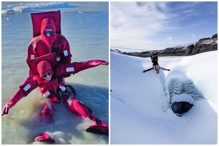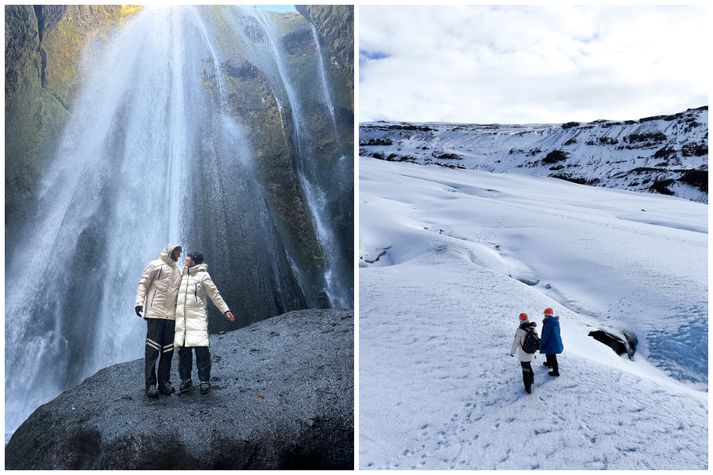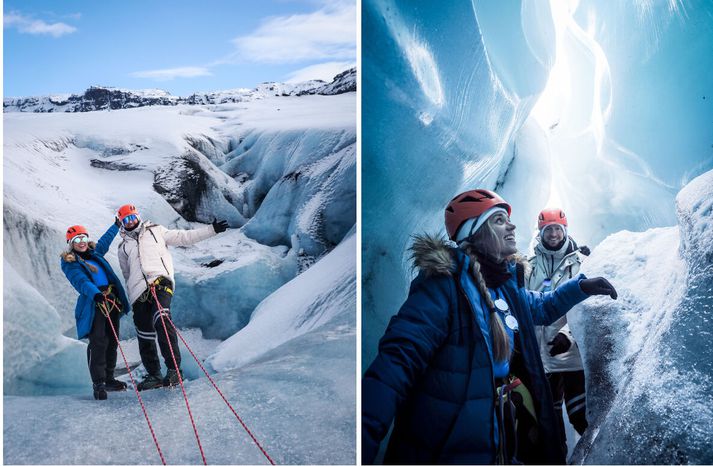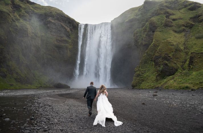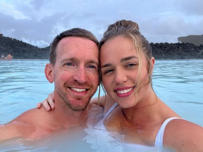 „Ég var mjög skipulögð manneskja þegar ég kom fyrst til Íslands. Landið hefur breytt mér, auðveldað mér að sleppa takinu, berast með straumnum og treysta því að allt gangi bara einhvern veginn upp,“ segir Brittany sem er ekki söm eftir kynni sín af landi og þjóð.„Þetta reddast“ er satt best að segja orðið að einhvers konar einkunnarorðum fjölskyldunnar og ég held að þetta hugarfar sé eitt það magnaðasta sem Ísland hefur gefið okkur.“ Jake og Brittany eyddu páskunum á Íslandi og ætla að koma aftur í september og þá í fyrsta skipti með börnin sín tvö.Mynd/The Venture Seekers Brittany og Jake búa ásamt tveimur börnum, tíu og sex ára, í Illinois í miðvesturríkjum Bandaríkjanna. Hann er rafvirki og hún tannfræðingur og sér auk þess um The Venture Seekers á Facebook, TikTok, þar sem þau eru með vel yfir 20.000 fylgjendur og hafa fengið 4,4 milljónir „læka“ á færslur sínar og Instagram þar sem fylgjendur eru rétt tæplega 20.000. Þessir bölvuðu ferðamenn „Við grínumst stundum með það við fylgjendur okkar að ef þú þolir rokið í Miðvesturríkjunum þá ræður þú líka við Ísland. Munurinn er helst sá að Ísland er miklu fallegra,“ segir Brittany og hlær. @the.ventureseekers Those darn American tourists 😆 But honestly… Iceland isn’t just a place you visit. It’s a place that changes you. There’s a slower pace of life. A deeper appreciation for what actually matters. Cleaner food, cleaner water, cleaner air… and views that don’t even feel real. And then there’s that mindset… þetta reddast -everything will work out. It’s something you don’t just hear… you feel it while you’re there. That’s why we keep going back. And yes… I know I don’t say everything perfectly. I’ve had exactly one person tell me they were “disgusted” by how I pronounce some Icelandic words 😅 But here’s the thing… you don’t learn if you don’t try. You don’t learn a language by staying quiet. You learn by showing up, saying it wrong, and being willing to grow. And every single time we’ve been in Iceland, the people have met that effort with nothing but kindness. So while this reel is meant to be funny… I just want to say thank you. To everyone in Iceland who has welcomed us, helped us, and made us feel at home-you truly are something special 🤍 We’re so grateful for you. #iceland #tourist ♬ original sound - The.VentureSeekers Hjónin sóttu Ísland heim í þriðja skipti á jafn mörgum árum um páskana og hafa verið að birta afraksturinn á samfélagsmiðlum sínum. Þar á meðal myndskeið sem sýnir Brittany undir sterkum Íslandsáhrifum eftir heimkomuna og er komið með ríflega 11.000 „læk“ á TikTok og tæplega 1600 deilingar.Þá eru Íslendingar frekir til fjörsins í athugasemdum enda hefur klippan, sem þau nefna „Those darn American tourists“ eða „Þessir bölvuðu amerísku ferðamenn“, vakið nokkra athygli hér á landi. Eðlilega kannski þar sem Brittany fer á kostum þegar hún slær um sig með: „Takk fyrir“, „bless, bless“ og „góðan daginn“ með sínum miðvesturríkjahreim. Og vitaskuld einum höfuðfrasa íslenskrar tungu sem orðinn er hálfgert leiðarljós fjölskyldunnar: „Þetta reddast.“ Brauð og co, jökulvatn og hávaðarok koma einnig við sögu og ekki ber á öðru en að land og þjóð hafi slegið eign sinni á hvert bein í henni. Jake og Brittany komu fyrst til Íslands 2023 og jafnvel þótt þau hefðu ekki notað tækifærið til þess að endurnýja hjúskaparheitin er ljóst að landið hefði engu að síður náð tilfinningalegu grettistaki á þeim. Mynd/Aðsend „Markmiðið með því sem við erum að gera er alltaf að brjótast út fyrir þægindarammann, prófa nýja hluti og upplifa ævintýri saman,“ segir Brittany en í endalausri ævintýraleit eltast þau Jake við ógleymanlegar upplifanir og einstaka staði og framleiða lífsstílsefni á samfélagsmiðlana þar sem þau skrásetja í máli, myndskeiðum og myndum ferðasögur sínar þar sem Ísland er orðið ákveðinn miðpunktur. Ísland tikkar í öll box „Við erum bæði mjög ævintýragjörn en höfðum ekki ferðast mikið erlendis og vorum því að leita að stað sem væri bæði spennandi og gerlegt fyrir okkur að heimsækja og fórum fyrst til Íslands 2023 þegar börnin voru enn frekar lítil.Ég er búin að kenna börnunum heima síðustu fimm ár sem mér finnst það hafa þjappað fjölskyldunni saman og hægt þannig á okkur að við eyðum meiri tíma markvisst saman.“ @the.ventureseekers Men, sweep your wives off to Iceland immediately. I’m glad my husband swept me for a third time now 🙈😍👏🏻 Ladies you can share this with your man so he knows what you’d like 😉🤣👏🏻 Locations in video so you can go: 📍Skogafoss 📍Braud & Co 📍Hotel Jokularson 📍 @Ice Pic Journeys 📍 Fjallsarlon 📍 Seljalandsfoss 📍 @laugaraslagoon #iceland #travel #adventure ♬ original sound - The.VentureSeekers Heimamenntun barnanna er Brittany þannig afar hugleikin auk þess sem þau vilja með ævintýraleit sinni, öðrum þræði, skapa börnunum minningar og gefa þeim tækifæri til að draga lærdóm af eigin upplifunum og reynslu. Brittany sagði það því koma sér mjög vel að beint flug frá Chicago tæki ekki nema um sex klukkustundir. „Og okkur fannst dásamlegt að geta farið nógu langt til þess að finnast við vera í alvöru könnunarleiðangri en samt ekki lengra en svo að við gætum drifið okkur heim til barnanna ef þörf væri á. Ég held líka að stór ástæða fyrir því að við komum alltaf aftur til Íslands sé að landið tikkar virkilega í öll box hjá okkur sem pari og fljótlega líka sem fjölskyldu þar sem við tökum krakkana með okkur í fyrsta skipti í september.“ Alltaf eitthvað nýtt Hún segir fyrstu