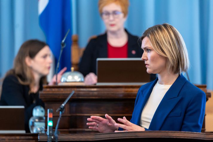 Ríkisstjórn Kristrúnar Frostadóttur Alþingi Sjálfstæðisflokkurinn Samfylkingin Evrópusambandið Þjóðaratkvæðagreiðsla um ESB-viðræður Tengdar fréttir „Ég kann ekki að meta það þegar ég er sökuð um ósannindi eða blekkingar“ Uppnám var á þinginu nú áðan og kvartaði Kristrún Frostadóttir forsætisráðherra undan því að vera sökuð um ósannindi. Sigmundur Davíð Gunnlaugsson formaður Miðflokksins var heitur í umræðunni og mátti sæta ákúrum Þórunnar Sveinbjarnardóttur forseta Alþingis fyrir frammíköll. Sigmundur Davíð var ósáttur við þetta og taldi Þórunni misbeita valdi sínu í þágu forsætisráðherra. 16. apríl 2026 12:31 Mest lesið Verjanda Helga Bjarts nóg boðið Innlent Afleiðingarnar af systkinabroti séu verri en brotið sjálft Innlent Þórdís Kolbrún skipuð sendiherra í London Innlent Launahækkun Höllu illskiljanleg Innlent Eldur olli miklum skemmdum í kjallara Innlent Faðirinn skaut sjö börn sín til bana og eitt til viðbótar Erlent Föst í Herjólfi í korter eftir langa ferð frá Eyjum Innlent Stór skálfti í Japan og flóðbylgjuviðvörun gefin út Erlent Nánast búin með stafrófið Innlent Vinstrið eygir þrjá borgarfulltrúa og sjálfstæðismenn þann sjöunda Innlent Fleiri fréttir Eldur olli miklum skemmdum í kjallara „Hræðsluáróður, stagl og þvæla sem stjórnarandstaðan ætlar að keyra á“ Þórdís Kolbrún skipuð sendiherra í London Nánast búin með stafrófið Útlit fyrir flókna meirihlutamyndun í borginni Launahækkun Höllu illskiljanleg Verjanda Helga Bjarts nóg boðið Mandarínönd heillar við Hamarkotslæk Öll tólf mánaða börn fá leiksskólapláss í Kópavogi Vilja að fullorðnir lofi að búa til rými þar sem börn geta sagt frá Vinstrið eygir þrjá borgarfulltrúa og sjálfstæðismenn þann sjöunda Bein útsending: Samtal um atvinnustefnu og aðgerðir í þágu verðmætasköpunar Afleiðingarnar af systkinabroti séu verri en brotið sjálft Sagðist ætla að kveikja í hundi áður en hann rændi gull- og demantsmunum Föst í Herjólfi í korter eftir langa ferð frá Eyjum Skýringar manns sem vildi „endurvekja þýsku sturturnar“ héldu ekki vatni Nánast hreint kókaín í umferð en ekkert fentanyl Ofsaakstur um allt höfuðborgarsvæðið Nám Hildar sé merkilegra en menntunarfræði leikskóla „Ég sé engin rök fyrir því“ „Það er bara frekar slæmt ástand“ Inga sendir boltann á sveitarfélögin „Hver hefur reynslu af því að byrla eiginkonu sinni?“ Vill verja hundruðum milljóna í þegar dýrt leikskólakerfi „Eitthvað það tilgerðarlegasta og hallærislegasta sem ég hef séð“ Þúsundir karla byrla eiginkonum sínum og nauðga Inga of upptekin til að funda: „Við höfum ekki fjármagn, engan stuðning“ „Lóa í Víðum“ sveitarstjóraefnið Aðildar- eða aðlögunarviðræður, djúptækni og tekist á í borginni Innbrot í kirkju og slagsmál í strætisvagni Sjá meira