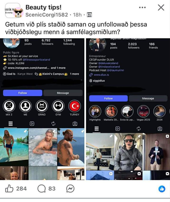 „Ég er náttúrulega bara húsráðandi í samkvæmi þar sem þetta fólk kemur saman,“ segir Sigurður í samtali við Vísi en hann var meðal þeirra þriggja sem lögreglan á Akureyri handtók í byrjun mars í tengslum við meint kynferðisbrot gegn konu á þrítugsaldri. Rannsókn lögreglu á málinu er lokið en ákæra hefur ekki verði gefin út, að því er fram kom í frétt Rúv í síðustu viku. Þar var þó haft eftir lögreglu að fleiri en einn hefðu enn stöðu sakbornings í málinu. Lögregla tjáði samt Sigurði á föstudag að hún hefði fellt niður rannsókn hvað hann varðaði, samkvæmt bréfi sem Vísir hefur fengið að sjá. Ekki þótti grundvöllur til að halda rannsókninni á Sigurði áfram. Sigurður Sindri Magnússon er eigandi Deluxe Iceland.Skjáskot/Facebook Ekki liggur fyrir hvort hinir tveir sem handteknir voru á Akureyri verði ákærðir, en annar þeirra er áhrifavaldurinn Kristján Einar Sigurbjörnsson, öðru nafni þekktur sem Kleini. Frá því að málið spurðist út hafa tvær fyrrverandi kærustur Kleina tjáð sig um ofbeldi af hans hálfu. Sigurður segist við Vísi ekkert þekkja Kleina. Hann útskýrir að hann hafi verið í skíðaferð með félögum sínum þessa helgi, tekið íbúð í bænum á leigu og haldið þar samkvæmi sem Kleini hafi sótt — og þar sem meint brot mun hafa átt sér stað. Þetta skipti, aðfaranótt 8. mars, hafi verið í fyrsta sinn sem hann hafi hitt Kleina. Hann hafi aðeins verið tekinn í skýrslutöku vegna þess að hann hafi verið húsráðandinn og að litlar sem engar upplýsingar hefðu legið fyrir um meint brot þegar það var tilkynnt til lögreglu. Brotaþoli hafi ekki þekkt nöfn á gerendum Eva Hauksdóttir, lögmaður konunnar, útskýrir við Vísi að þegar brotaþoli hafi tilkynnt brotið til lögreglu hafi hún ekki þekkt nöfn á þeim sem hún taldi hafa brotið á sér. Því hafi lögregla aðeins getað hafið rannsókn út frá þeim takmörkuðu gögnum sem lágu fyrir. Eva kveðst lítið getað tjáð sig um málið frekar enda eigi lögregla enn eftir að gefa út hvort ákært verði í málinu eða ekki. „Engin bein leið til að stjórna því“ Bróðir Sigurðar, Kristinn Sævar, birti í dag færslu á Facebook að því tilefni að rannsókn lögreglu á Sigurði er lokið. Kristinn gagnrýnir þar hinn margumtalaða „dómstól götunnar“ en tekur einnig fram að að ekkert í gögnum málsins bendi til þess að Sigurður hafi með nokkrum hætti tekið þátt í meintu broti. Þrátt fyrri það hafi fólk gengið út frá því að hann væri sekur um nauðgun og orðrómurinn fengið að ganga óáreittur með tilheyrandi afleiðingum. Sigurður segist í samtali við Vísi vera miður sín yfir því að gróusögur hafi fengið að grassera á samfélagsmiðlum síðasta mánuðinn þar sem hann er bendlaður við meinta nauðgun. Hann segist þó sáttur að staðreyndir málsins liggi loksins fyrir. Kristinn, bróðir hans, birti á annan tug skjáskota af samfélagsmiðlum þar sem fólk fullyrðir ýmist undir nafni eða nafnlaust að Sigurður sé nauðgari, bæði í ummælakerfum og í færslum á samfélagsmiðlum. Sigurður hafði verið bendlaður við meinta nauðgun víðsvegar á samfélagsmiðlum. Skjáskot/Facebook „Ég er dreginn inn í einhverja umræðu þar sem engar staðreyndir eða neitt liggja fyrir,“ segir Sigurður við Vísi. „Svo náttúrulega bara fer umræðan af stað og það er engin bein leið til að stjórna því.“ Hann hafi í mars kosið að tjá sig ekki opinberlega um málið, en á meðan hann þagði sat hann undir umtalsverðu aðkasti á samfélagsmiðlum. Sigurður, sem rekur ferðaþjónustufyrirtæki, segir að fólk hafi jafnvel áreitt starfsmenn sína, með þeim afleiðingum að þeir hafi hætt störfum. Fólk í hans innsta hringur hafi einnig verið sett í erfiða stöðu, þar sem því væri gjarnan stillt upp við vegg og látið taka afstöðu með eða á móti honum, þrátt fyrir að lítil sem engin gögn lægju fyrir. Fjöldi fólksbendluðu Sigga og jafnvel fyrirtæki hans við verknaðinn.Skjáskot/Facebook „Það var gífurlegt áreiti,“ segir Sigurður. „Gífurlegt áreiti á alla, og líka bara pressa á fólk að taka afstöðu í málinu.“ Vonar að samfélagið geri betur „Ef einhver er að setja svona út í umræðuna þá bera þeir ábyrgð á því,“ segir Sigurður, sem vonast til þess að samfélagið dragi lærdóm af þessu máli. Hann segist ekki myndu óska þessari upplifun neinum. „Mér finnst við bara eiga að gera betur sem samfélag,“ bætir hann við. Hann er þó sáttur við að geta einbeitt sér að fullu að rekstrinum að nýju. „Ég vissi náttúrulega nákvæmlega að staðreyndirnar í þessu máli myndu koma í ljós,“ bætir hann við. Sem fyrr segir er rannsókn lögreglu lokið, um mánuði eftir að meint brot áttu sér stað, en lögregla á enn eftir að gefa út hvort hinir tveir verði ákærðir í málinu.