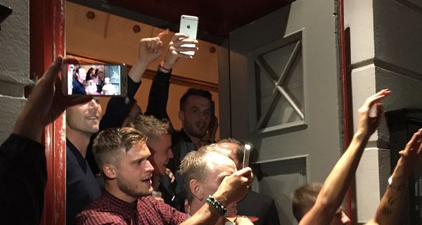 Landsliðsmennirnir tóku pásu frá borðhaldinu til að fagna með Tólfunni - Partur 3 Lífið 3178 7.9.2015 16:53