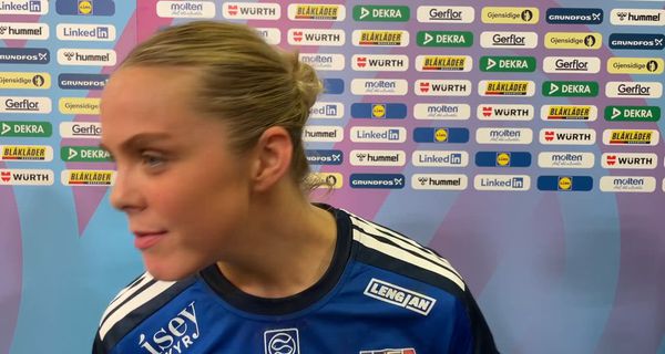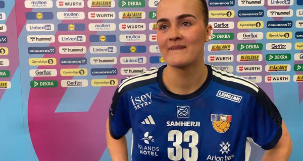 Elín Klara Þorkelsdóttir ræðir fyrsta leik Íslands á HM gegn heimakonum í Þýskalandi fyrir fullri höll í Stuttgart. Leiknum lauk með sjö marka tapi Íslands.