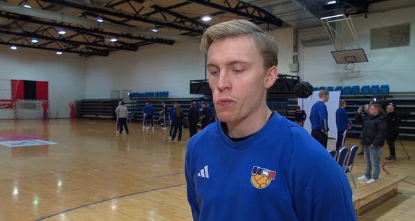 „Stemningin er bara mjög góð eins og hún er alltaf á þessum tímapunkti að fara að byrja þetta og við erum bara spenntir að koma okkur út og spila fyrstu æfingaleikina, klára þennan undirbúning og gera það vel,“ segir Haukur Þrastarson fyrir æfingu íslenska landsliðsins í handbolta í Safamýrinni í gær.