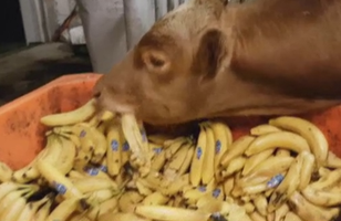 Banananaut dekruð með ávöxtum og grænmeti Á bóndabýlinu Vatnsenda við Flóa fá nautin sér að borða grænmeti og ávexti. 27.5.2017 20:32